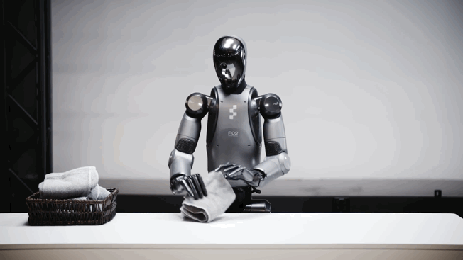 正如这次Figure 02在展示视频中的表现,当人类拿着衣物篮向它走去,机器人头部有着跟随的动作,最后放下篮子的时候,机器人还比出大拇指,示意接收任务。正式开始叠毛巾后,Figure 02可以迅速判断出毛巾翘边的部分并抚平。当完成一阶段任务后,Figure 02主动把衣物篮拉向自己,方便传递给人类,并直接开始下一阶段的折毛巾任务。