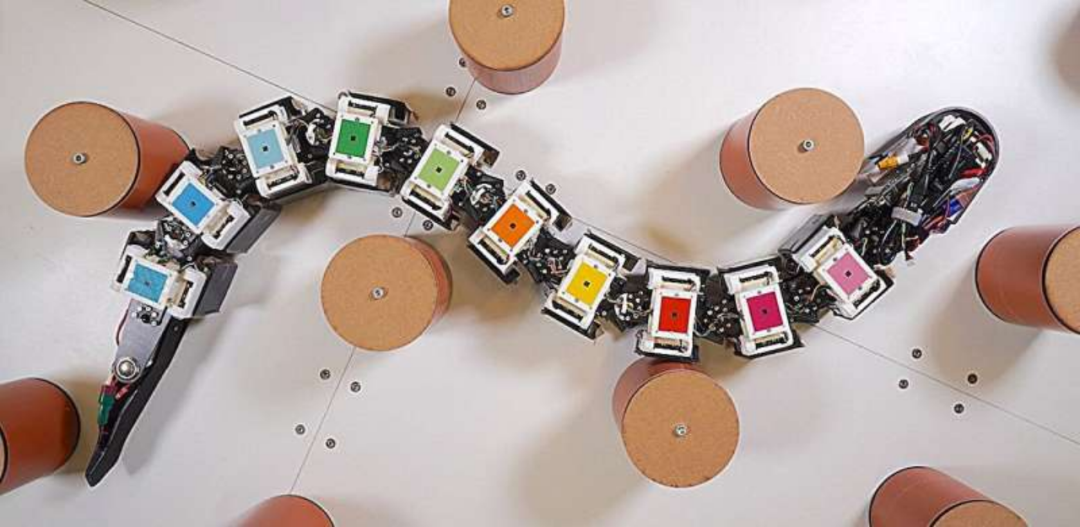 实验结果令人振奋:基于感觉反馈的控制模型不仅能让机器人在水中高效游动,还能自主切换到陆地爬行模式,甚至能够绕开障碍物继续前进。