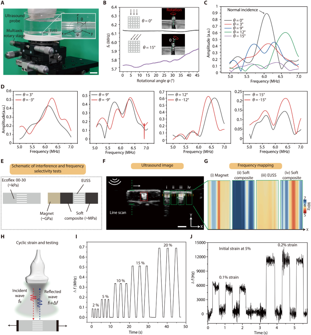 信号处理与特征提取:对采集到的RF数据执行快速傅里叶变换(FFT),将其从时域转换到频域。研究人员开发了专门的特征提取算法,通过识别频域中的峰值频率来确定EUSS的当前状态。该系统采用多扫描线平均技术(通常同时分析5条相邻扫描线),显著提高了信噪比和测量稳定性。实验表明,在法向入射条件下,系统的频率测量均方根误差(RMSE)可低至0.032 MHz。