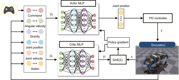 在运动控制方面,机器人采用了结合近端策略优化 (PPO) 和低级 PD 控制器的混合控制系统。该策略在模拟中训练,观测数据包括命令输入、关节位置和速度、角速度、重力矢量和先前的动作。执行器网络输出关节位置目标,PD 控制器跟踪这些目标以产生扭矩命令。使用该框架,机器人实现了超过 12 km/h 的非铺砌地形运动速度,展示了其在具有挑战性的高地环境中的多模态移动性和系统稳健性。