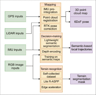 其中,地形分类系统是感知系统的重要组成部分。研究人员收集了900多张高原典型地形的图像,包括水坑、泥地、垂直障碍、碎石、台阶、草地、沙地和沟渠等8个类别。通过这些数据训练出的深度学习模型,使机器人能够以87.5%的准确率识别不同地形,从而采取相应的运动策略。