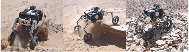 研究人员派出了三种不同体型的轮足机器人参与此次任务,分别是: