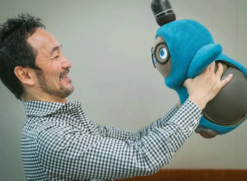 Groove X执行长Hayashi Kaname与LOVOT进行互动