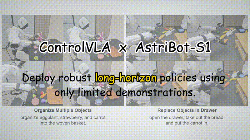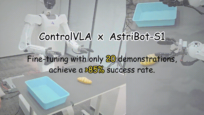 近日清华大学与通用人工智能研究院(BIGAI)团队提出的 ControlVLA 框架,给出了令人眼前一亮的答案 —— 在 8 项真实世界任务中,采用星尘智能 Astribot S1机器人测试,仅用 10-20 次人类演示,就能实现 76.7% 的任务成功率,而传统方法要达到相近效果,至少需要 100 次以上演示。