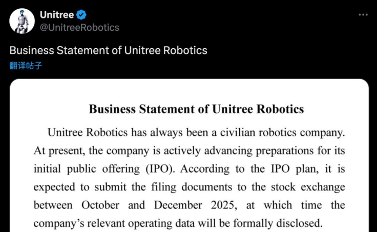 宇树2025年7月由中信证券启动上市辅导,9月官宣预计于10-12月向证券交易所提交上市申请文件。6月完成C轮融资引入腾讯、阿里巴巴、蚂蚁集团、吉利控股等,投后估值超120亿元,注册资本从288.9万元增至3.64亿元,美团、红杉中国此前已投资。