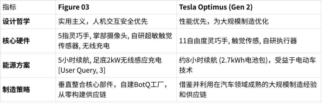 硬件是机器人与物理世界交互的媒介,Figure 03和Optimus在设计上的差异,深刻反映了它们各自的AI策略和市场定位。