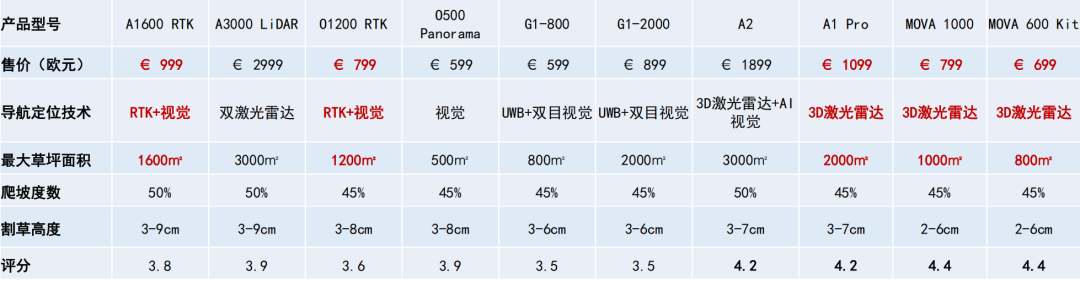 一类是"技术先行者",比如九号(最早做RTK技术)、科沃斯(扫地机技术复用,避障更精准)、石头科技(2025年刚推出能爬80%陡坡的新品)、MOVA(3D激光雷达技术路线,高性价比快迭代),扫地机器人由于与割草机器人在导航、运动等模块上具备较强的技术协同性,它们靠快速差异化技术迭代产品抢占中高端市场;