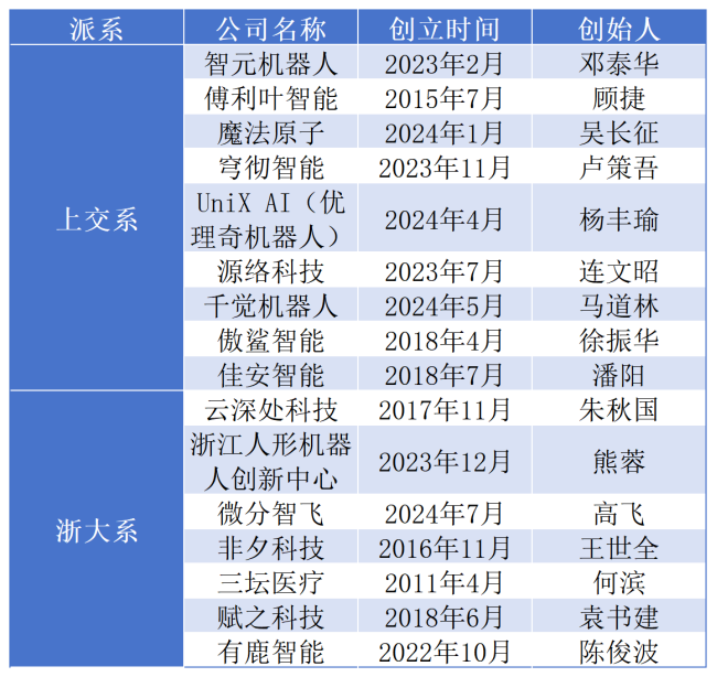具身智能领域已形成以清华大学、哈尔滨工业大学、北京大学、中国科学技术大学等多所高校为技术源头的产业集群,其中以上海交通大学、浙江大学为核心的两大派系发展尤为显著,与清华系等共同构成行业内极具代表性的力量。本篇我们将集中梳理浙大系、上交系。