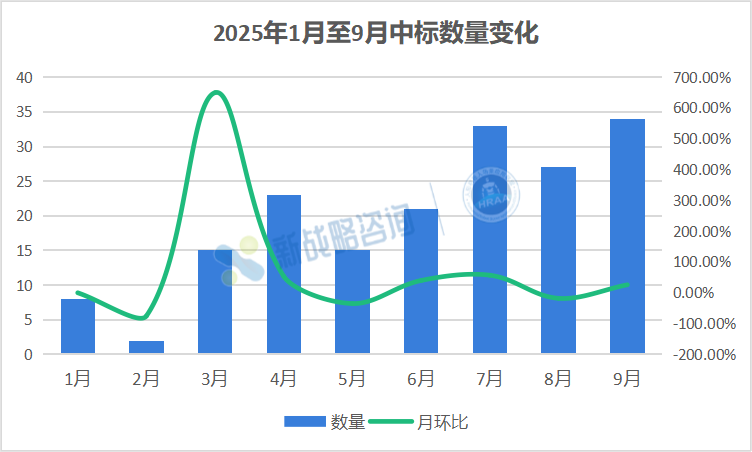 三季度中标企业中,呈现出典型的头部效应与梯队分化。
