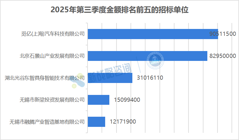 企业客户成为最主要的采购金额来源。觅亿(上海)汽车科技有限公司、北京石景山产业发展有限公司、湖北光谷东智具身智能技术有限公司位列前三,分别采购9051万元、8295万元、3101万元,占总金额的29%、26%、10%。这类企业多为产业园区运营方、新能源汽车企业或具身智能平台型公司,具备较强的技术集成能力与场景试点需求。