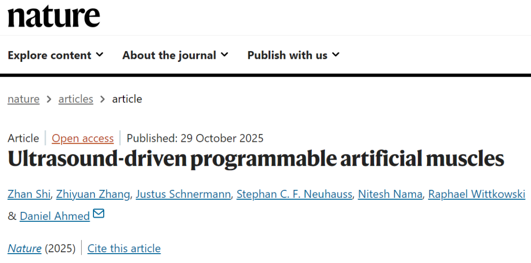 近日,苏黎世联邦理工学院的Daniel Ahmed教授团队开发了一种含有微泡且可通过超声波控制的新型人工肌肉。为软体机器人、可穿戴技术、触觉技术和生物医学等领域的发展提供新机会。