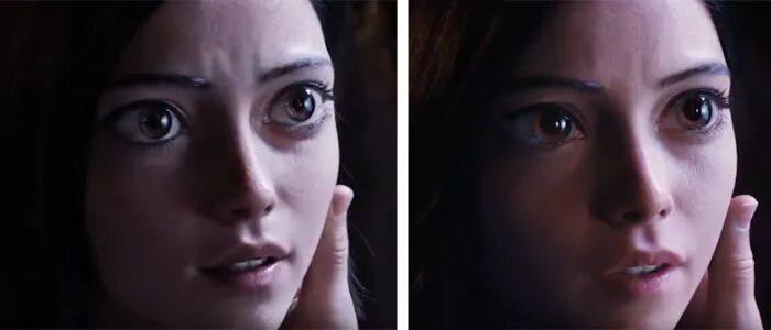 使用夸张的瞳孔来避免跌入恐怖谷并非宇树独创。此前在科幻电影《阿丽塔》中,动效团队担心其完全数字制作的主角会给人带来恐怖谷效应,便在“仿真眼”和夸张的“动漫眼”之间选择了后者。