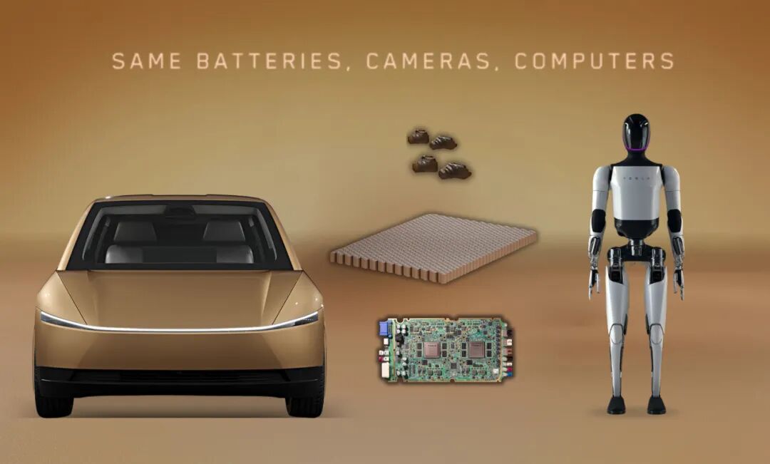 如果结合之前两个信息,可以推断特斯拉应该是按照专利的方式去布置摄像头,也就是共计6个摄像头。2024年10月特斯拉optimus官方号发布一个视频,表示特斯拉Cybercab与特斯拉Optimus共用电池,摄像头传感器以及自动驾驶控制器。
