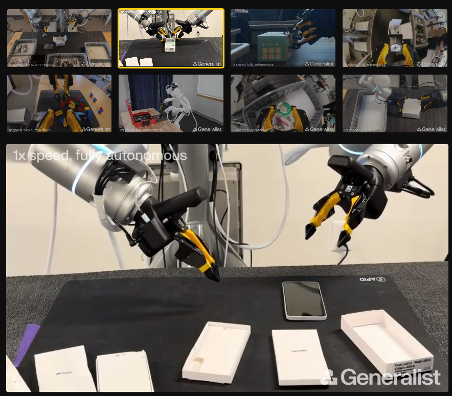该模型用于训练的数据集,涵盖了从全球数千个家庭、各类仓库及不同类型工作场所采集到的真实世界操作轨迹数据,累计数据时长达到 27 万小时。更为关键的是,该数据集并非静态固定,而是处于持续扩充的状态,目前以每周新增 1 万小时数据的速度不断丰富,其涵盖的真实操作数据量级,已远超此前机器人领域已有的各类大型数据集,为模型学习多元场景下的物理交互规律与操作逻辑提供了充足的数据支撑。