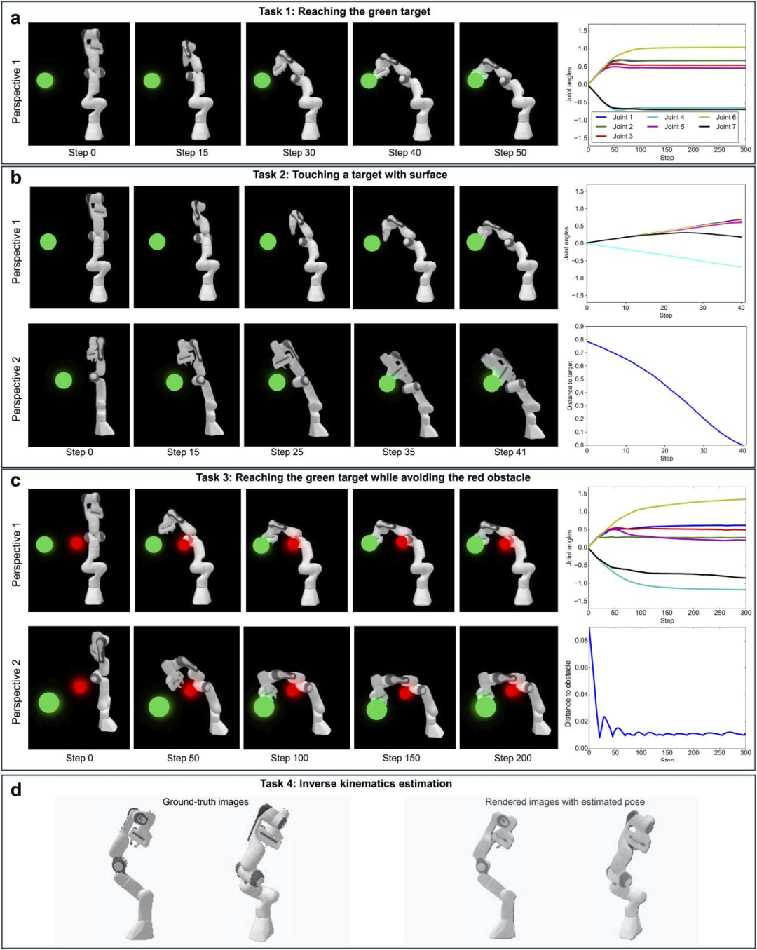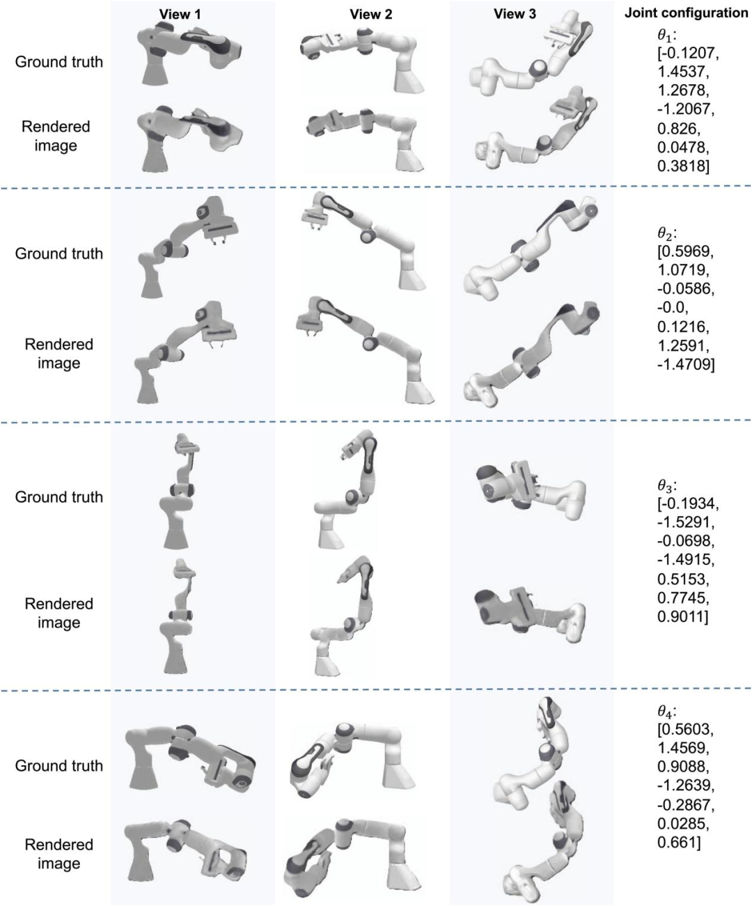 此外,该技术为逆运动学问题提供了新的解决思路。给定一张机器人姿态的图片,自模型可以通过优化关节角度使其渲染图像与输入图片匹配,从而准确估算出机器人的当前状态。这项能力在状态监测、故障诊断等领域具有重要应用价值。