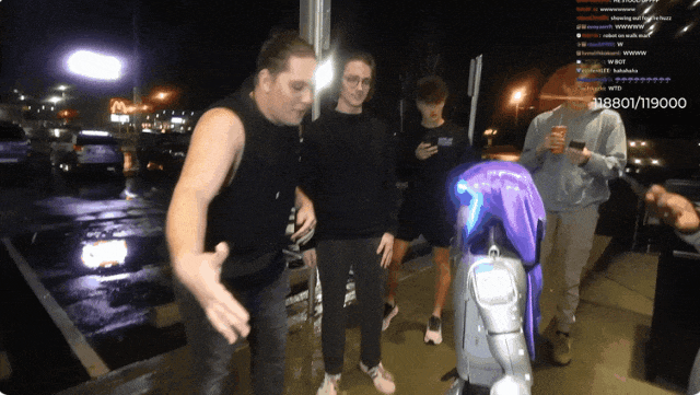在直播中,Kai Cenat展示了各种与机器人的“友好互动”,堪称21世纪殴打机器人第一案。
