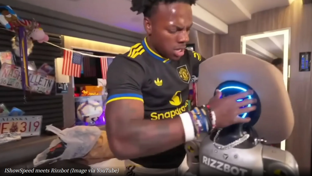 这位名叫达伦·杰森·沃特金斯二世(Darren Jason Watkins Jr.,又名IShowSpeed或Speed,注:不少中国网友称他为“甲亢哥”)的主播被指控“故意伤害”了Rizzbot,一个曾在奥斯汀直播节目中亮相的爆红牛仔机器人。