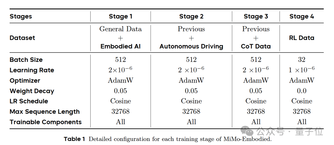 由此,通过无缝集成视觉和文本领域,MiMo-Embodied增强了多样化多模态推理任务和应用的潜力。
