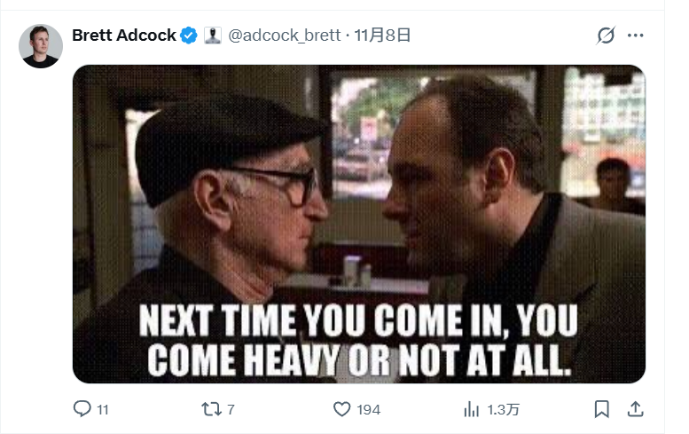但 Adcock 显然不打算轻松放过对手,只甩下一张表情包:“下次你来的时候,要么全力以赴,要么就别来。”