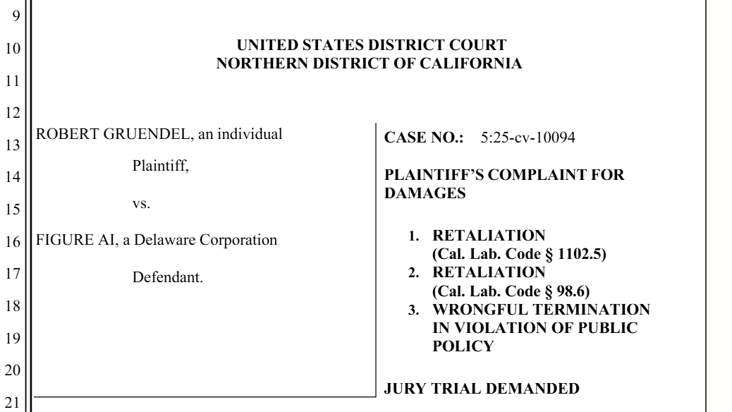 Gruendel VS. Figure AI的诉状