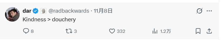 这场争执很快吸引了第三家明星人形企业,1X 的产品副总裁 Dar Sleeper 转发并发表评论:“善良 > 混蛋。”