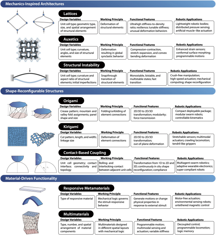 论文中,科学家们将超材料的设计原则归纳为三大“法宝”,它们正在从不同维度为机器人注入原生智能。
