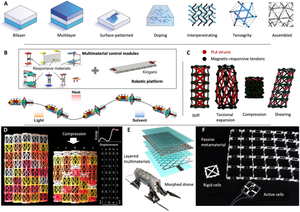 借鉴古老的折纸、剪纸和接触耦合技术艺术,超材料可以实现极其复杂的二维到三维形状变换,这让机器人能重构身体形态,像变形金刚一样动态调整自身来应对多变环境。
