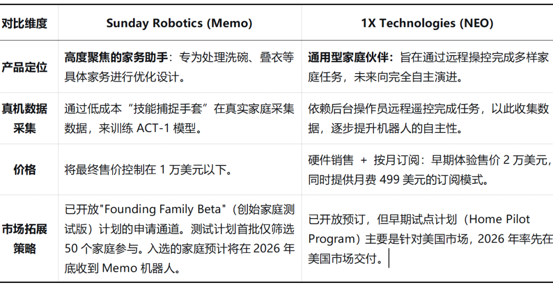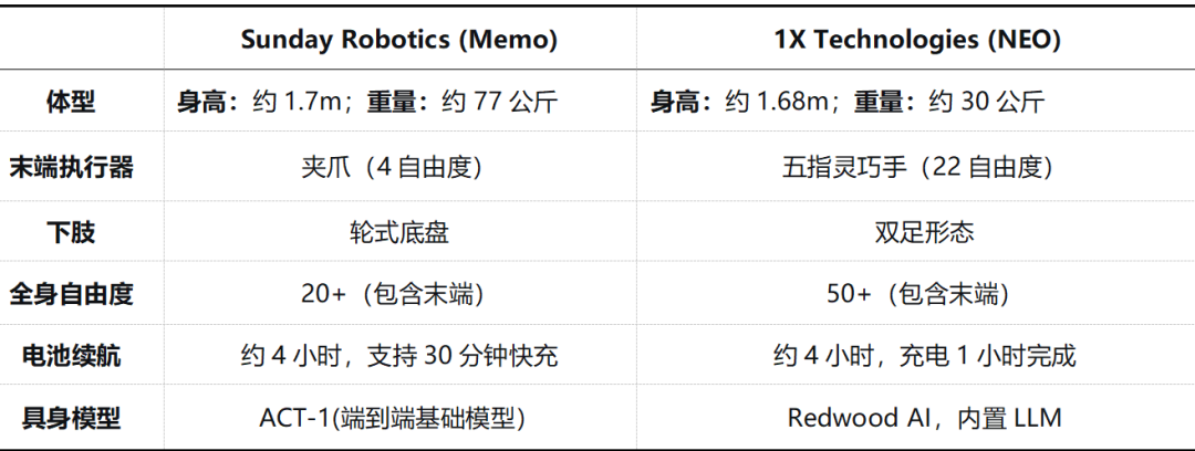 Sunday Robotics (Memo) VS 1X Technologies (NEO) (机器觉醒时代制图)
