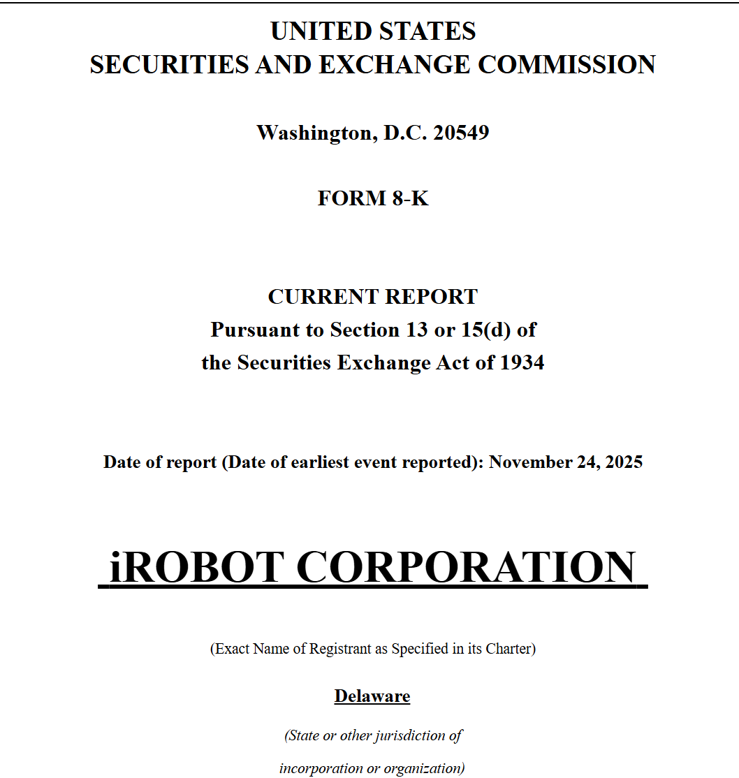 12月1日的SEC文件,彻底暴露了iRobot的财务困境。