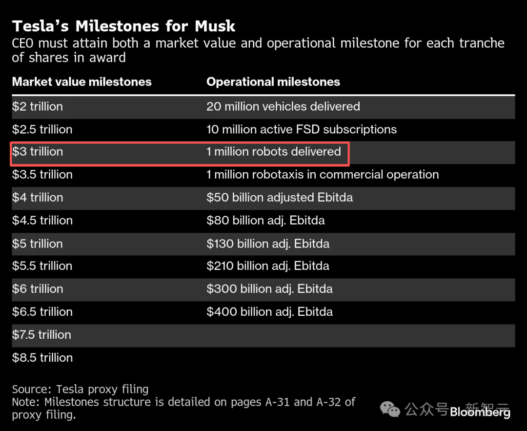 根据彭博社的统计,机器人也关乎马斯克的「万亿薪酬计划」——
