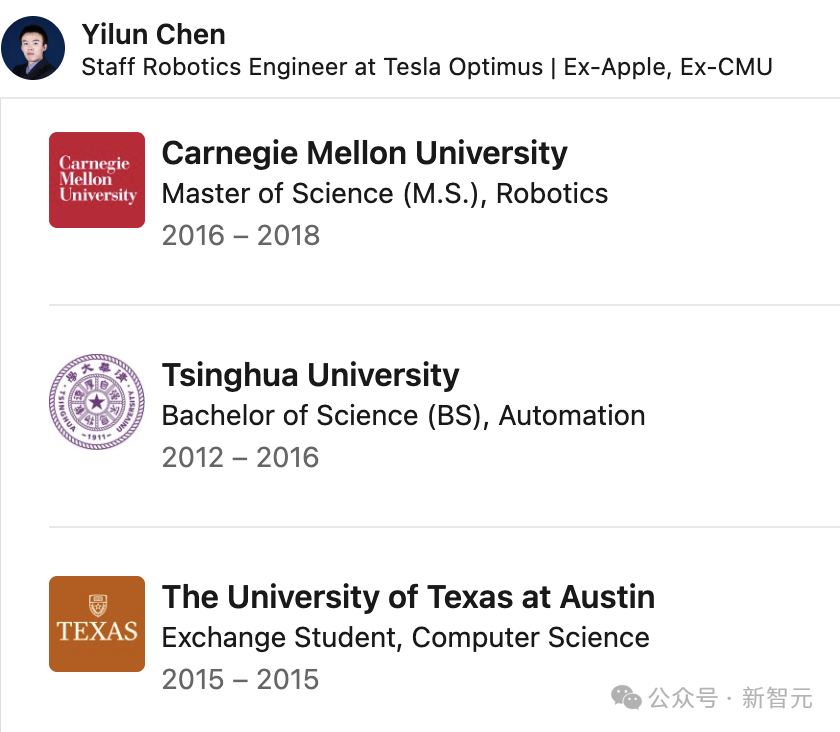 Yilun Chen已作为机器人工程师加入特斯拉Optimus团队。过去四年,他在苹果担任机器学习工程师兼机器人研究科学家。