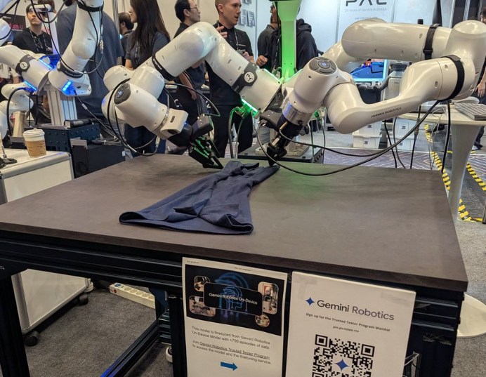 谷歌DeepMind为例,其GERMINI平台基于Franka机器人结合大语言模型(LLM)和视觉语言动作范式,搭建了覆盖多模态感知、策略规划和动作执行的综合研究体系。