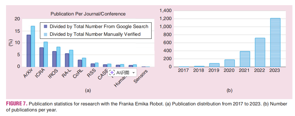 从2016年面世以来,其面向科研和教育市场,提供1000Hz快速响应的FCI接口,支持高频率控制和数据采集,使研究者能够快速验证新算法和控制策略。基于Franka机器人的论文每年超过1000篇,累计超过10000篇,并且大多数开源。