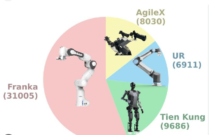 谷歌DeepMind 牵头推出的开源数据集OpenX-Embodiment是面向具身智能和机器人学习的重要资源,旨在为研究者提供大规模、高质量的多模态操作数据,加速算法开发和真实世界迁移。在该数据集中,Franka 机器人贡献了主要部分的数据,涵盖高自由度操作、力控交互和复杂任务序列。