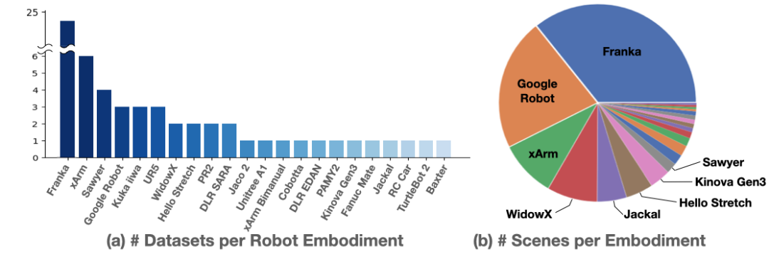 谷歌DeepMind牵头的OpenX-Embodiment开源数据集FRANKA最多