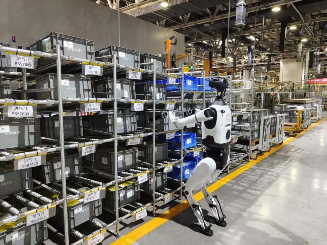 如今在福田康明斯昌平工厂,北京人形的具身天工2.0与天轶2.0在福田康明斯进入实训,其中,天轶2.0能高效率完成物料转运作业,面对使用3-5年的变形周转箱,可通过视觉感知系统实时动态调整抓取角度,实现非结构化环境下的自适应操作。