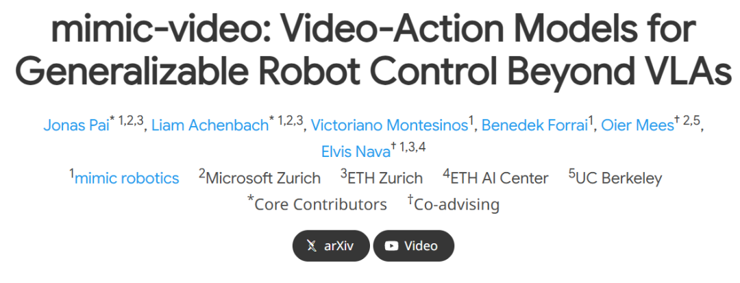 mimic-video是一种新型的视频动作模型 (VAM),它将机器人策略建立在预训练的视频模型之上。