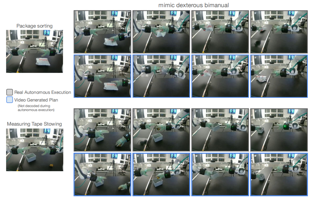 研究团队通过Franka Emika Panda 机械臂和 16 自由度仿人灵巧手的真实双机械臂系统上,对 mimic-video 进行训练与评估。