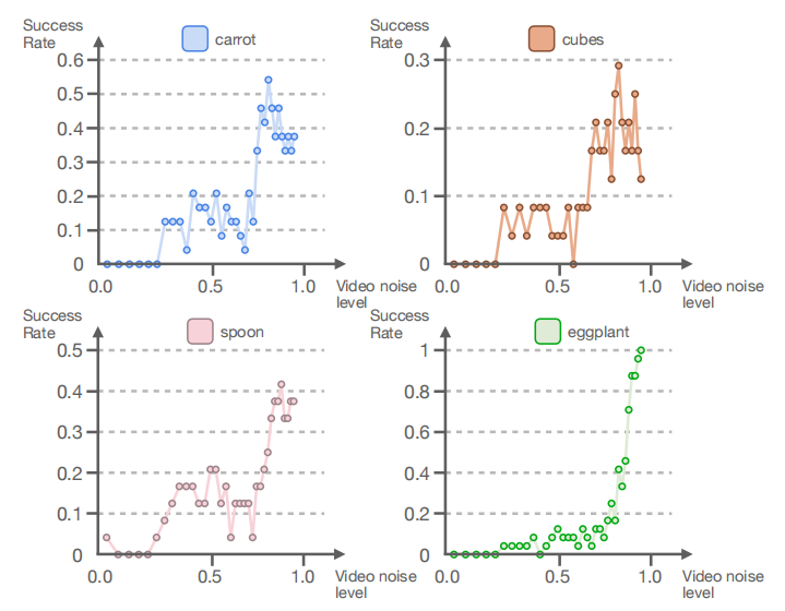 这一发现具有重要的实践意义:它证明机器人需要的是视频中蕴含的动态规律,而非像素级的视觉细节,这也为后续模型优化指明了方向——无需追求高保真视频生成,重点应放在捕捉核心动力学特征上。