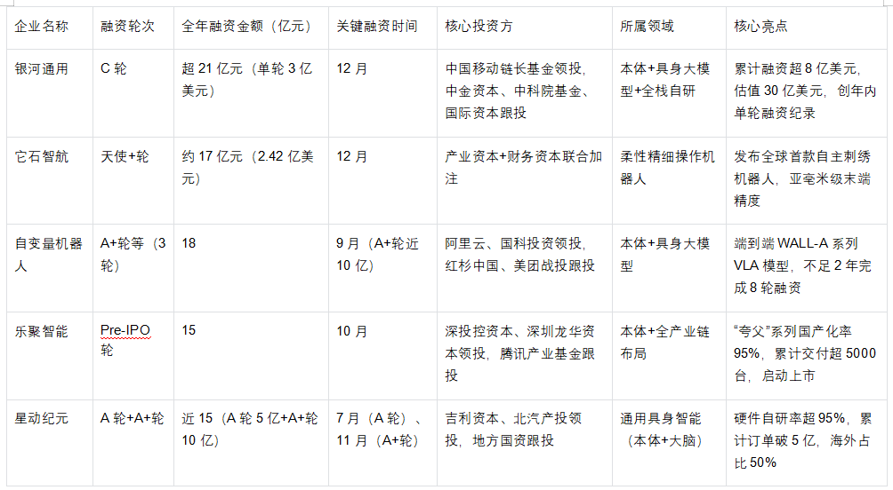 2025年核心企业典型融资事件汇总表(部分)
