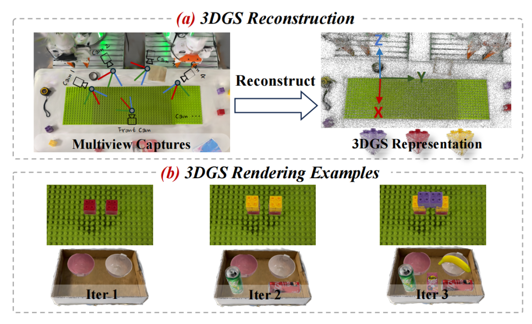 训练规划专家需要大量的中间步骤数据,但手动收集这类数据成本极高。为此,研究团队基于3D高斯溅射技术开发了高保真数字孪生工具包,能够自动生成训练所需的操作手册数据。