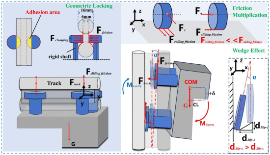 他们采用了一种全新的重力驱动锁定结构和被动自适应机制,让它能在多曲率复杂轨道上稳定攀爬,甚至在遭遇突发颠簸时也能瞬间锁定,防止坠落。
