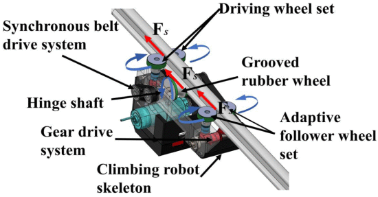机械夹持式机器人通过电动或气动装置产生夹持力。这种方式不依赖轨道材质,但需要持续能源输入,结构复杂,且在突发振动或坡度变化时响应速度可能不足。