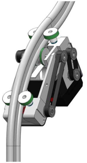 当机器人在水平轨道上运行时,重力会转化为轴向压力,使车轮更紧地贴合轨道。