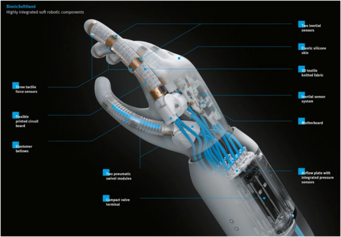 压电陶瓷执行器利用压电材料通电后会微小变形的逆压电效应,将电能直接转化为纳米级直线位移。PIP-844系列压电执行器与FestoBionicSoftHand的组合堪称“微观操作专家”。PIP-844系列位移分辨率0.1nm,响应时间<10μs,最大推力达3000N,行程90μm,凭借无机械磨损特性成为精密驱动核心。FestoBionicSoftHand仿生手则集成12个自由度,通过PIP-261压电阀精准控制气动手指运动,手指由波纹管与3D织物护套构成,可完成鸡蛋抓取(力度±0.5N)、纸片分拣(精度±0.1mm)等操作。