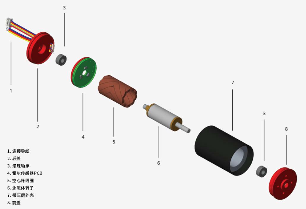 与传统电机相比,空心杯电机采用了无铁芯的转子设计,避免了电机在运行过程中产生的涡流效应,而涡流效应会导致电机升温、扭矩波动以及能量损失。人形机器人灵巧手具有高自由度、高精度以及快速响应能力的需求,空心杯电机凭借其体积小、精度高、重量轻的特点成为了灵巧手电机的主流选择。