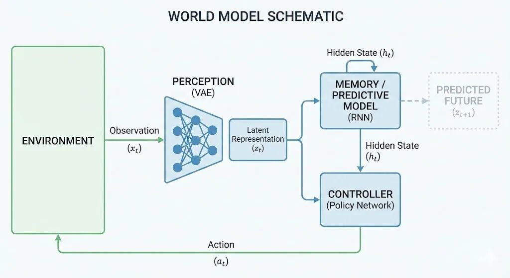 世界模型(World Model),指的是机器人在内部构建的一套对外部环境的抽象表示,用于理解环境结构、事物关系及其动态变化,并对下一步可能发生的情况进行推演。它不同于传统的三维建模,更强调对因果关系和时间演化的理解能力。