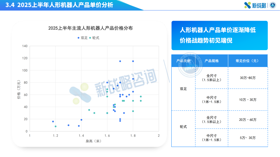 目前,部分中小尺寸人形机器人的价格已经下探至1万元左右,而部分全尺寸人形机器人的公开报价,也已下降到10万-20万元区间。