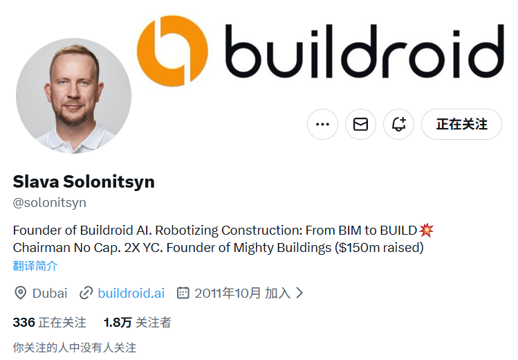 Slava Solonitsyn为 Y Combinator 孵化器校友,此前创立 3D 打印房屋企业 Mighty Buildings,累计融资超 1 亿美元,交付 50 多套 3D 打印住宅,在建筑行业供应链整合、规模化生产及市场推广方面积累了实践经验。