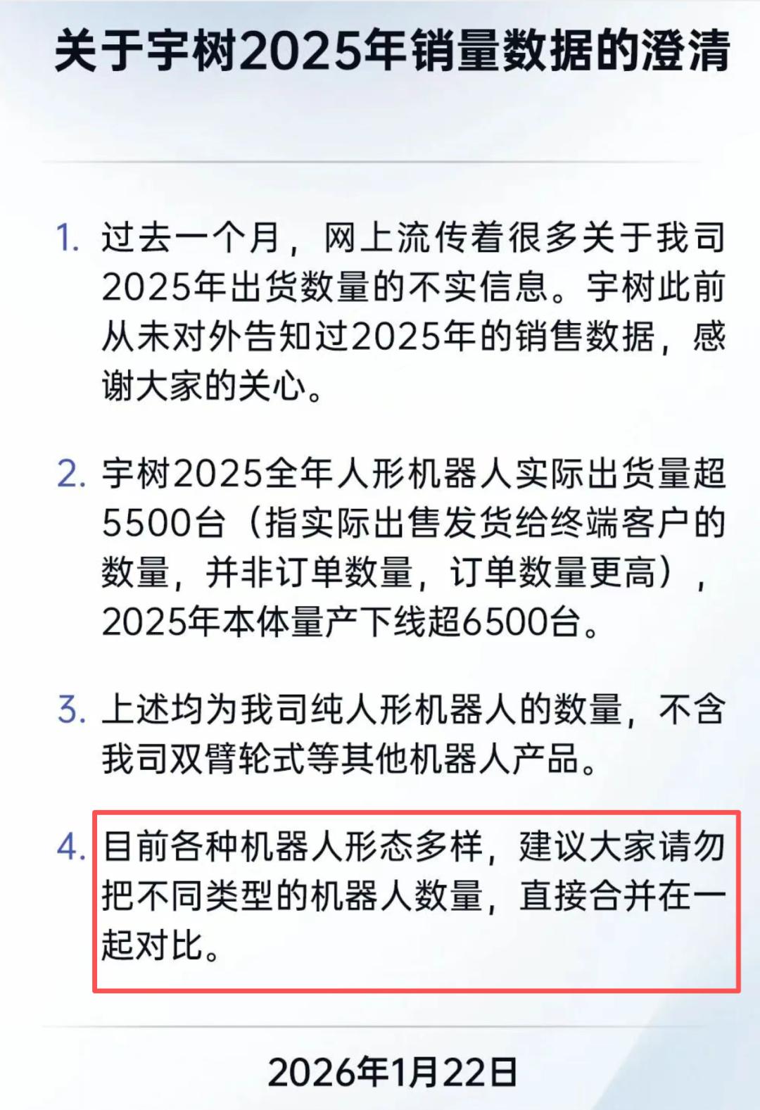 宇树还热心提醒大家,机器人形态很多,不要把不同类型的机器人数量合并在一起对比。言外之意,我,宇树,才是人形机器人出货NO.1。